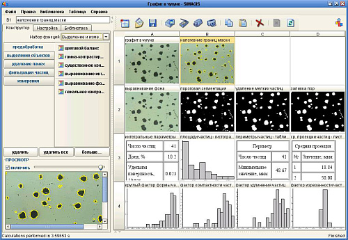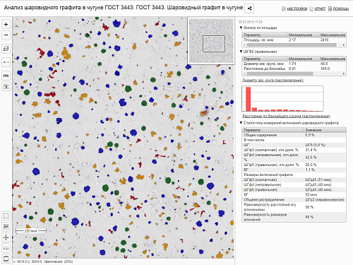 Первый сетевой панорамный анализатор изображений российского производства. Позволяет получать изображения, обрабатывать и автоматически анализировать их в соответствии с международными стандартами и ГОСТ. Программное обеспечение, в комплексе с микроскопом и камерой, внесено в Реестр средств измерений и имеет свидетельство об утверждении типа и свидетельство об аттестации программного обеспечения средств измерений.